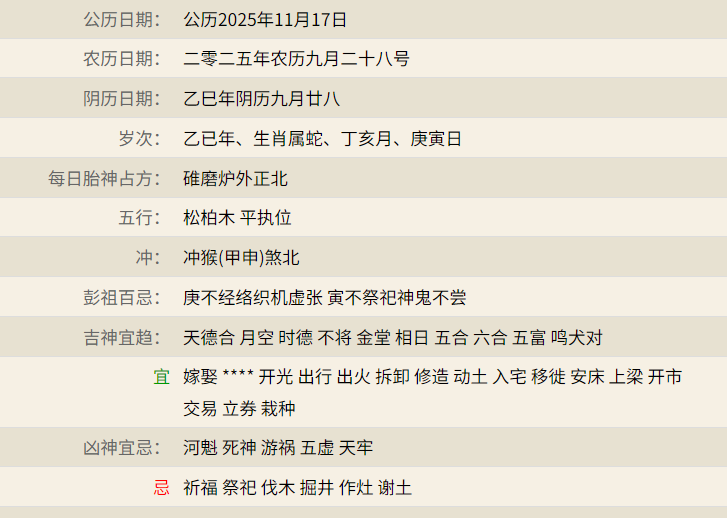 < 今日黄历 >