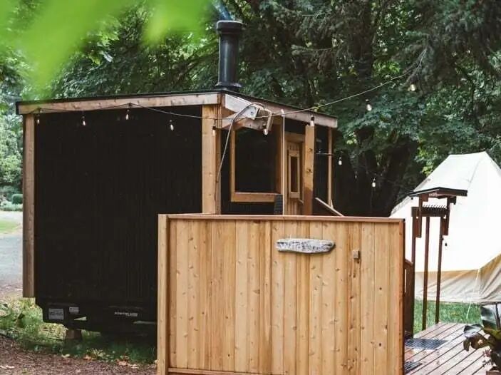 木质桑拿藏在树影里