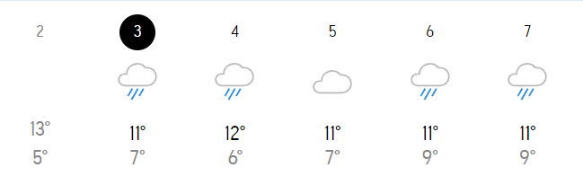 维多利亚本周气象预报(摄氏度)
