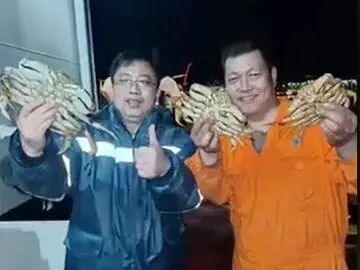 原本在温哥华出海抓蟹 是件挺惬意的事 但这几位的操作 简直让人看傻了眼 他们直接从商船侧舷垂下蟹笼 不仅连夜作业 甚至在视频字幕里 自豪地宣称“今晚不用睡了” 两小时就抓了100多只 总重估计有441磅!