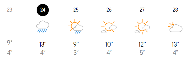 维多利亚本周气象预报(摄氏度)