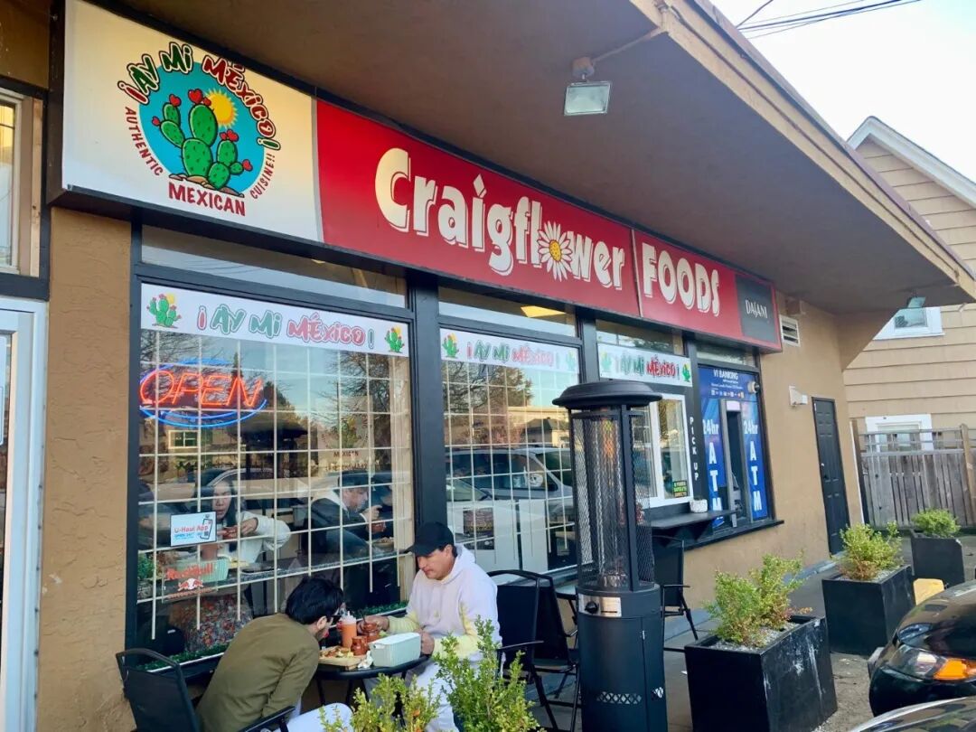这家叫作Ay Mi Mexico的店 真的很有意思 它就缩在一家叫 Craigflower Foods的 杂货店角落里 与其说是个餐厅 倒更像是个 充满烟火气的小摊位